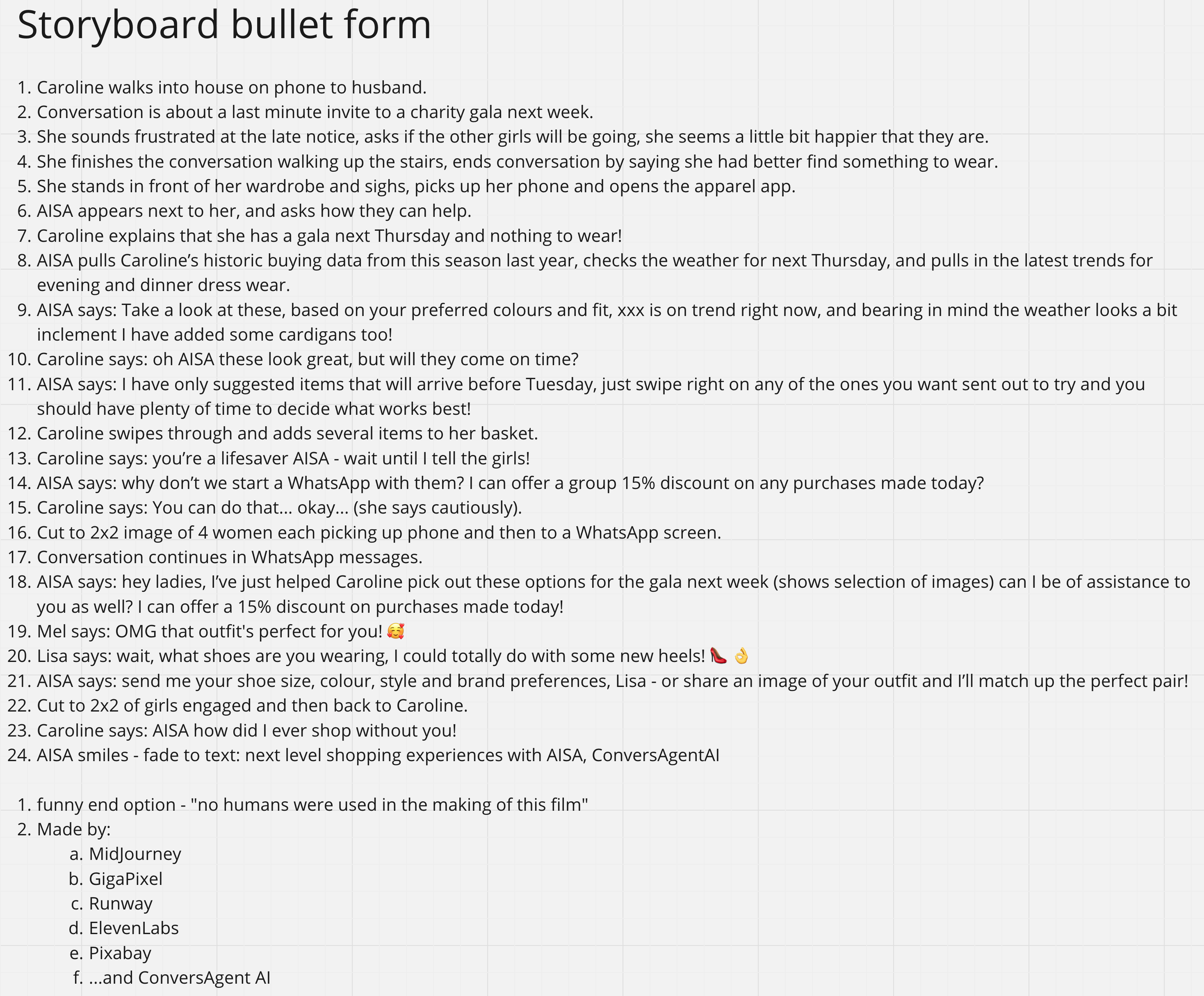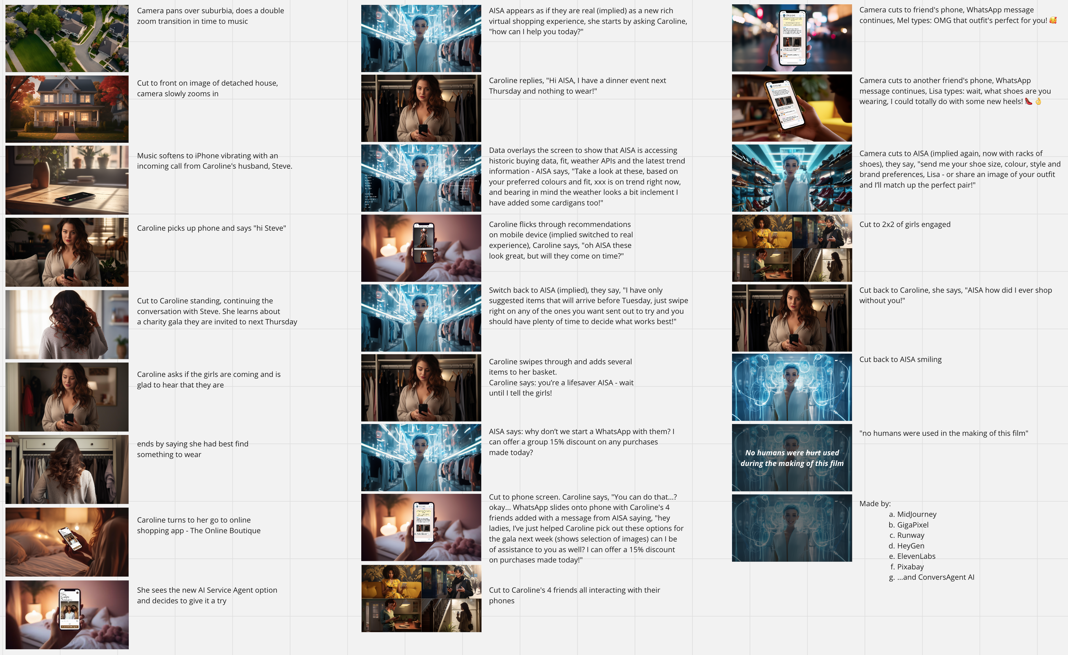 Using a selection of the latest AI tools, we storyboarded and created this 2 minute story of our AI Shopping Assistant service.