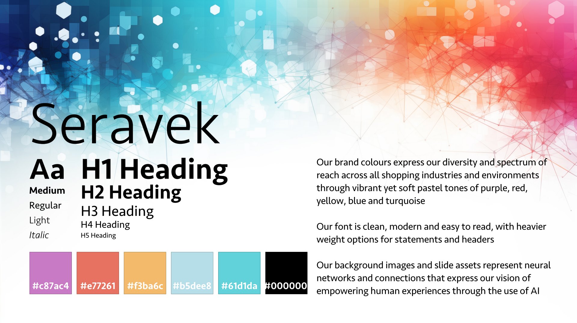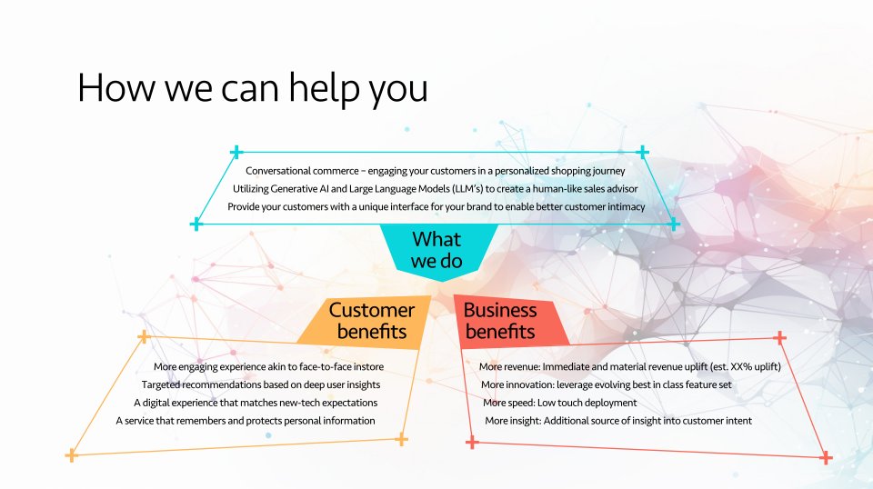Our background images and slide assets represent neural networks and connections that express our vision of empowering human experiences through the use of AI